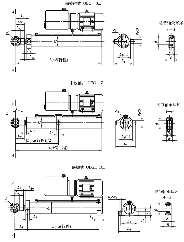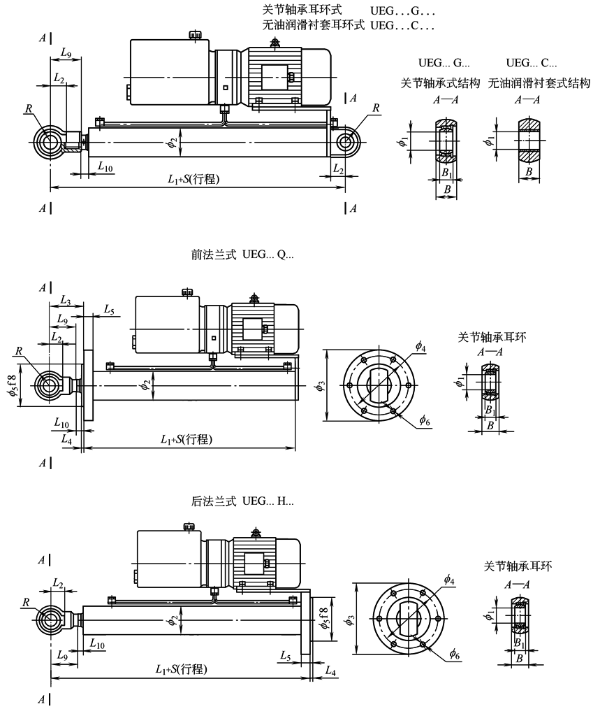 UEG系列并列式电动液压缸外形连接尺寸 |