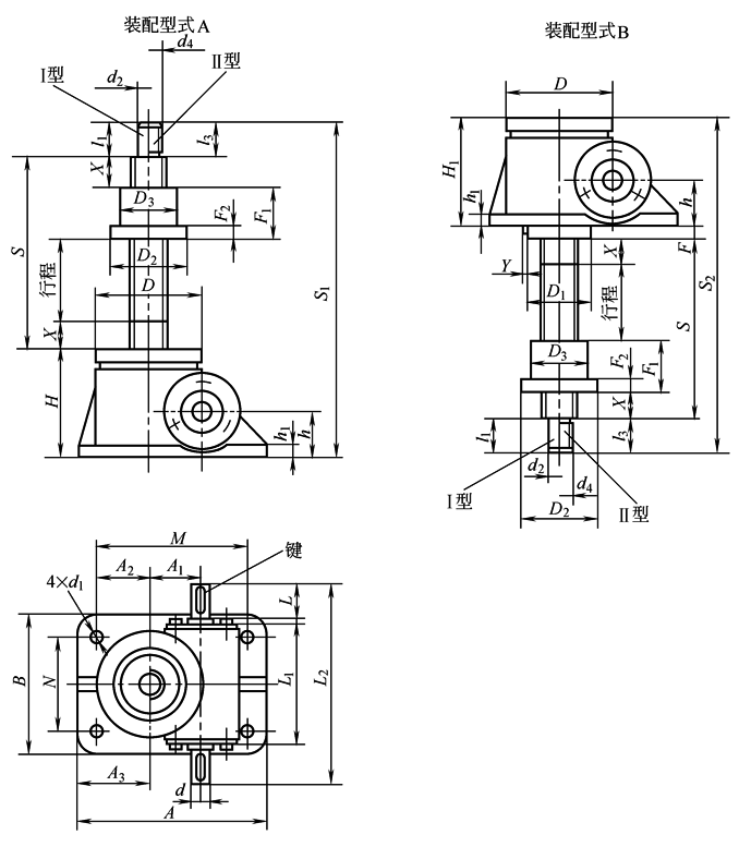 2型升降机的外形结构尺寸 (JB/T 8809—1998) |