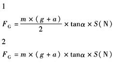 这里指的夹紧力FG是每个夹头的夹紧力,并且需考虑到在一定加速度的情况下夹紧工件运动时所需的夹紧力 对于摆角和旋转气爪来说,夹紧力FG必须换算成夹紧转矩MG MG=FG×r(N·m) 式中 r—力臂,m; m—工件质量,kg; g—重力加速度,g0≈10m/s2; a—动态运动时产生的加速度,m/s2; S—安全系数; α—V形气爪夹头的摆角(°); μ—气爪夹头与工件的摩擦因数 |