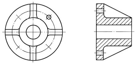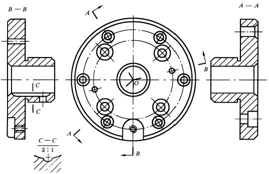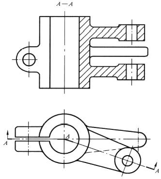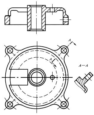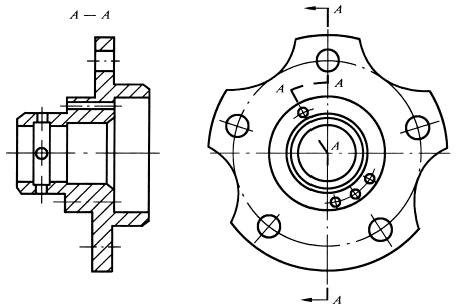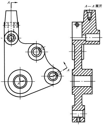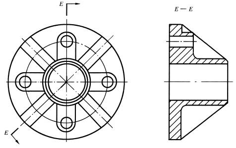 带有规则分布结构要素的回转零件,需要绘制剖视图时,可以将其结构要素旋转到剖切平面上绘制 |