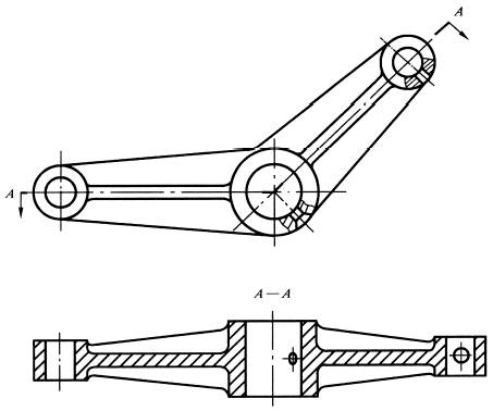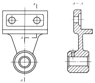 当剖切后产生不完整要素时,应将此部分按不剖绘制,如图中的臂 |
