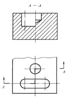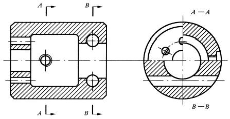 可将投射方向一致的几个对称图形各取一半(或四分之一)合并成一个图形。此时应在剖视图附近标出相应的剖视图名称“×—×” |