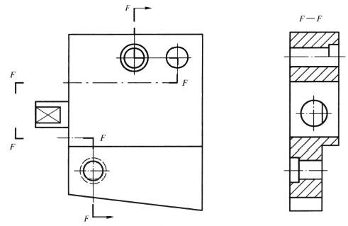 当只需剖切绘制零件的部分结构时,应用细点画线(No.04.1线型)将剖切符号相连,剖切面可位于零件实体之外 |