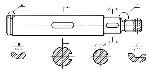 一般应用大写的拉丁字母标注移出断面图的名称“×—×”,在相应的视图上用剖切符号表示剖切位置和投射方向(用箭头表示),并标注相同的字母,图A—A。剖切符号之间的剖切线可省略不画 |