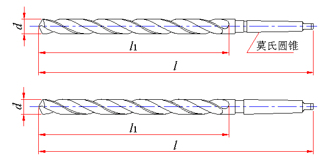 莫氏锥柄加长麻花钻 (摘自GB/T 1438.3—1996) (mm)