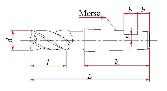 短莫氏锥柄立铣刀 (摘自 GB/T 1109—1985) |