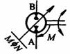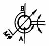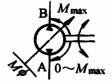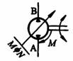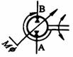 双向旋转 输入轴右向旋转时,A口为输出口,变量机构在控制位置M处 |
