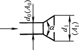 表中未计摩擦损失,其值按下列公式决定: ζ摩擦= A0,A1——管道相应于内径d0、d1的通过面积 |
