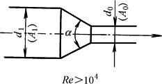 ζ=ζ′ ζ′—— 按表管道入口处的局部阻力系数第4项管道“入口处为倒角”的ζ 值 A0、A1——为管道相应于内径d0、d1的通过面积 |