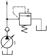 采用非限压式变量泵1时,系统的最高压力由安全阀2限定,安全阀一般采用直动型溢流阀为好;当采用限压式变量泵时,系统的最高压力由泵调节,其值为泵处于无流量输出时的压力值 |