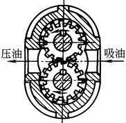 在密封壳体内的一对啮合齿轮,以啮合点沿齿宽方向的接触线将其吸油腔和压油腔分开,在其旋转时,齿轮脱开啮合的一侧形成局部真空,将油液吸入,而齿轮另一侧进入啮合,齿槽容积变小,油液被压出 |