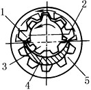 1—吸油腔;2—压油腔; 3—主动齿轮;4—月形件; 5—从动齿轮 |