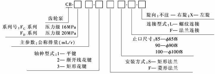 本系列外啮合齿轮泵采用铝合金压铸成型泵体,径向密封采用齿顶扫镗,轴向密封采用浮动压力平衡侧板,因而达到了高效率。该泵具有体积小、重量轻、效率高、性能好、工作可靠、价格低等特点,单向运转,旋向可根据用户需要提供。由于该泵具有上述特点,因此可广泛用于工作条件恶劣的工程机械、矿山机械、起重运输机械、建筑机械、石油机械、农业机械以及其他压力加工设备中 型号意义: