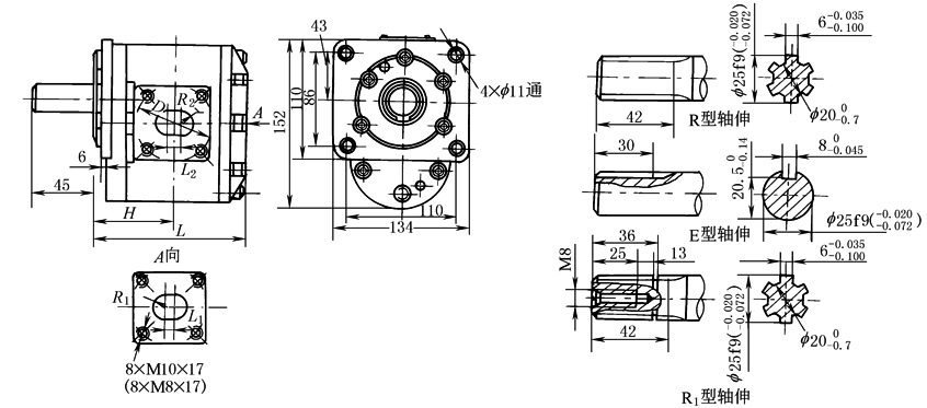 该系列产品是一种中、高压,中、小排量的齿轮泵,结构简单、体积小、重量轻,适用于汽车、拖拉机、船舶、工程机械等液压系统 型号意义: