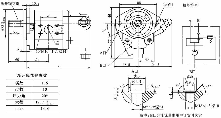 CBW/FA-E4系列复合齿轮油泵由一齿轮油泵与一单稳分流阀组合而成,为液压系统提供一主油路油流及另一稳定油流,有多种分流流量供用户选择,广泛应用于叉车、装载机、挖掘机、起重机、压路机等工程机械及矿山、轻工、环卫、农机等行业 CBWS/F-D3系列复合双向齿轮油泵由一双向旋转齿轮油泵和一组合阀块组合而成,组合阀块由梭形阀、安全阀、单向阀及液控单向阀组成,具有结构紧凑、性能优良、压力损失小等特点,主要用于液控阀门、液控推杆等闭式液压系统,为油缸提供双向稳定油流。