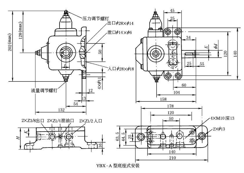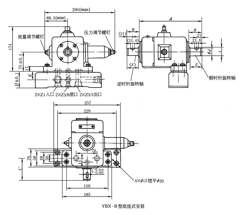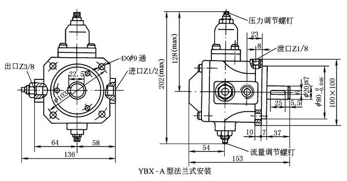 YB※型泵属“内反馈”限压式变量泵。泵的输出流量可根据载荷变化自行调节,即在调压弹簧的压力(可根据需要自行调节)调定情况下,出口压力升到一定值以后,流量随压力增加而减少,直至为零。根据这一特性,该型泵特别适用于作容积调速的液压系统中的动力源。由于其输出功率与载荷工作速度和载荷大小相适应,故没有节流调速而产生的溢流损失和节流损失,系统工作效率高、发热少、能耗低、结构简单。YB※型变量叶片泵有YBN型和YBX型两种,其功能和特点基本相同,而YBX型由于改进了泵的部分结构,使其额定压力高于YBN型
