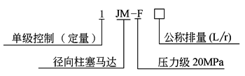 1JM系列产品系1JMD型液压马达的改进型,采用了静压平衡结构,提高了工作压力和转速范围,改善了低速稳定性,适用于工程运输、注塑、船舶、锻压、石油化工等机械的液压系统中 型号意义: