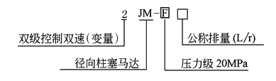2JM系列是在1JM型马达基础上发展起来的,采用了分体组装可调式结构——曲轴的偏心量可调,使液压马达具有两种预定的排量值(即两种转速值)。当采用手动控制变量时,马达在载荷运转下,用2 s左右的时间,进行两种排量的变换;采用恒压自动控制变量时,马达能有效地实现恒功率调速;若排量为零时,马达可作为自由轮使用。该系列液压马达适用于行走机械、牵引绞车、搅拌装置、恒张力装置、钻孔设备等液压系统中 型号意义: