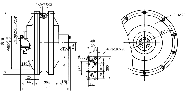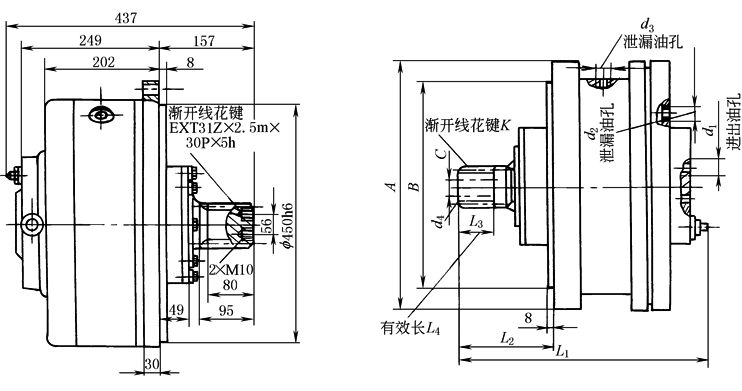 NJM-E40型液压马达外形尺寸(上海液压泵厂生产)