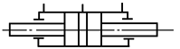 注:1.表中液压缸符号见液压系统图形符号(GB/T786.1)。带*者标准中未规定,仅供参考。 2.液压缸符号在制图时,一般取长宽比为(2~2.5)︰1。 3.液压缸活塞杆上附有撞块时,可按简单机构图画出,与表示活塞杆的线条连在一起。 4.液压缸缸体或活塞杆固定不动时,可加固定符号表示。 |