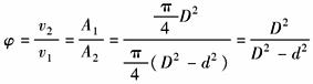 υ1 —— 活塞杆的伸出速度,m/min υ2 —— 活塞杆的缩回速度,m/min D —— 液压缸活塞直径,m d —— 活塞杆直径,m |