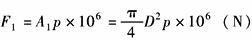活塞杆伸出时的理论推力F1为