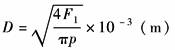 缸 筒 内 径 | 当液压缸的理论作用力F(包括推力F1和拉力F2)及供油压力p为已知时,则无活塞杆侧的缸筒内径为