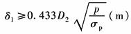 缸 筒 底 部 厚 度 | 缸筒底部为平面时,其厚度δ1可以按照四周嵌住的圆盘强度公式进行近似的计算: