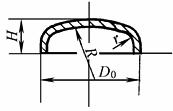 缸筒底部为拱形时(如图中所示R≥0.8D,r≥0.125D),其厚度用下式计算: | |||||||||