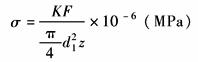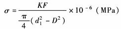 | F —— 缸筒端部承受的最大推力,N D —— 缸筒内径,m d0 —— 螺纹外径,m d1 —— 螺纹底径,m K —— 拧紧螺纹的系数,不变载荷取K=1.25~1.5,变载荷取K=2.5~4 K1 —— 螺纹连接的摩擦因数,K1=0.07~0.2,平均取K1=0.12 σs —— 缸筒材料的屈服点,MPa n0 —— 安全系数,取n0=1.2~2.5
