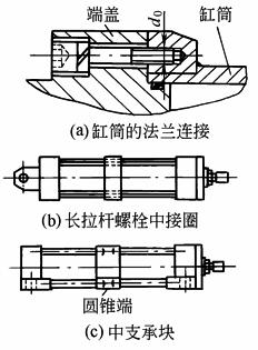 缸 筒 法 兰 连 接 螺 栓 | 缸筒与端部用法兰连接或拉杆连接时,如图a所示。螺栓或拉杆的强度计算如下: 螺纹处的拉应力