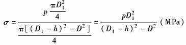 | p —— 筒内最大工作压力,MPa δp —— 筒底材料许用应力,MPa,其选用方法与上述缸筒厚度计算相同 D2 —— 计算厚度外直径,m β —— 系数,当H/D0=0.2~0.3时,取β=1.6~2.5 D0 —— 缸底外径,m | ||||||