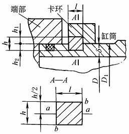 缸 筒 卡 环 连 接 | 缸筒与端部用卡环连接时,卡环的强度计算如下: 卡环的切应力(A—A断面处)