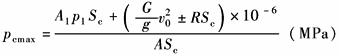 最高缓冲压力发生在活塞刚进入缓冲区一瞬时内,假定此时的减速度(最大减速度)a0=2am=