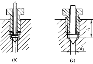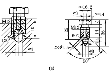 阀体与阀针合为一体,用螺纹与缸筒或缸盖连接,靠头部锥面起密封作用。排气时,拧松螺纹,缸内空气从锥面间隙中挤出,并经斜孔排出缸外 这种排气阀简单、方便,但螺纹与锥面密封处同轴度要求较高,否则拧紧排气阀后不能密封,会造成外泄漏 阀的材料用35或45碳素钢,锥部热处理硬度38~44HRC 整体排气阀的实际结构尺寸如图a所示 |