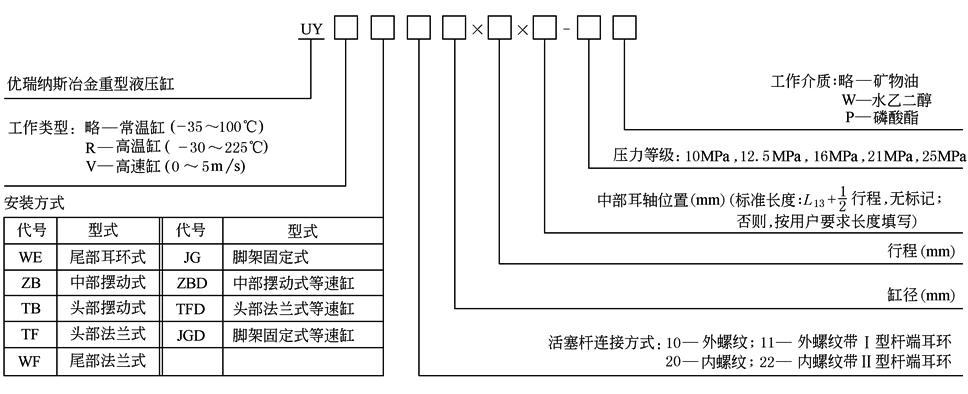 UY型液压缸为重型机械企业标准产品,标准号JB/ZQ 4181—1997 该型液压缸为冶金及重型机械专门设计,属于重负荷液压缸,工作可靠,耐冲击,耐污染,适用于高温、高压、环境恶劣的场合,广泛用于冶炼、铸轧、船舶、航天、交通及电力等设备上 |
