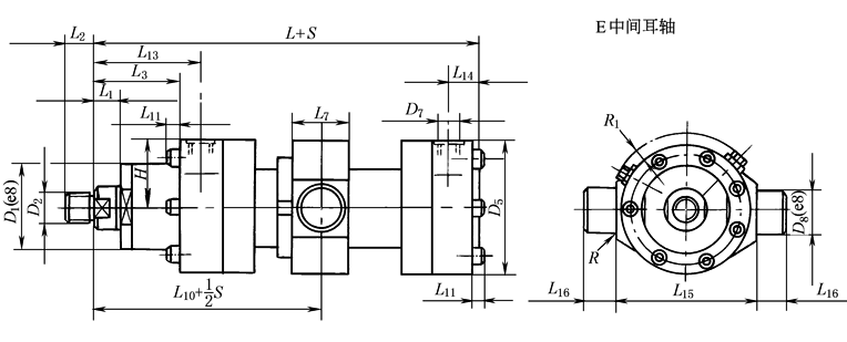 注:1.H、R1与CD250C缸头法兰安装的液压缸相同。 2.见表CD250A、CD250B差动重载液压缸注。 |