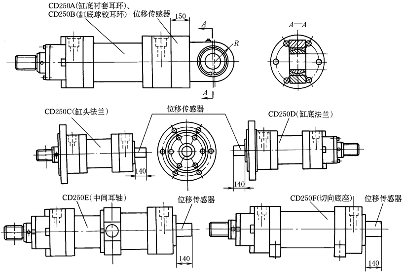(3)外形尺寸 外形尺寸见前述CD250 (4)行程及产品质量 |