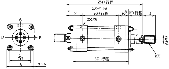 注:1.其他安装方式的尺寸可参照基本型式。 2.缸径超过160mm时,要与生产厂联系。 |
