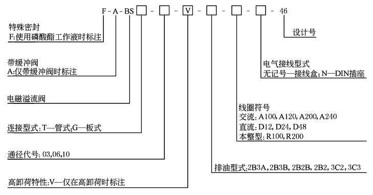 电磁溢流阀由溢流阀和电磁换向阀组合而成。通过对电磁换向阀电气控制,可使液压泵及系统卸荷或保持调定压力。也可配用遥控溢流阀,可使系统得到双压或三压控制 型号意义: