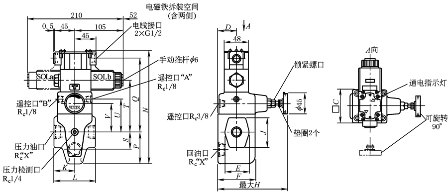 注:电磁换向阀的详细尺寸请参照电磁换向阀DSG-01。 |
