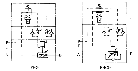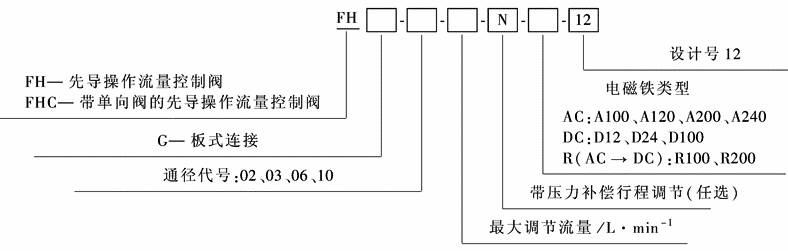 本元件用液压机构代替手动调节旋钮进行流量调节,并能使执行元件在加速、减速时平稳变化,实现无冲击控制。本元件还具有压力、温度补偿功能,保证调节流量的稳定 型号意义: