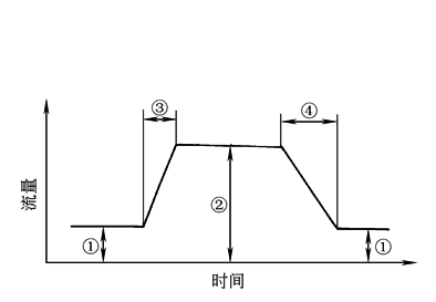 2) 电磁换向阀在“OFF”状态(见图2中①),达到最小流量调整螺钉设定的流量,执行元件按设定的最低速度动作,顺时针转动调整螺钉,则流量增大 3) 使电磁换向阀从“OFF”到“ON”时,从小流量转换为大流量,执行元件从低速转换为高速,转换时间用先导管路“A”流量调节手轮设定 4) 使电磁换向阀从“ON”到“OFF”时,从大流量转换为小流量,执行元件从高速转换为低速,转换时间用先导管路“B”流量调节手轮设定 特性曲线与F型流量控制阀相同,见表F(C)G型流量控制阀中图1、图2 |