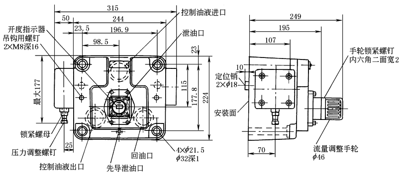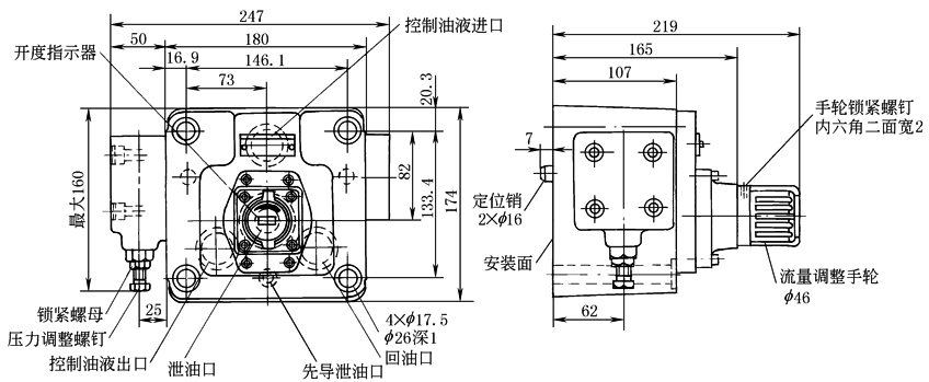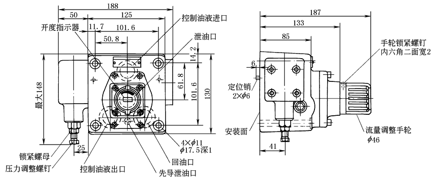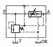 本元件由溢流阀和节流阀并联而成,用于速度稳定性要求不太高而功率较大的进口节流系统。具有压力控制和流量控制的功能,其进口压力随出口负载压力变化,压差为0.6MPa,因此大幅度降低了功耗 |
