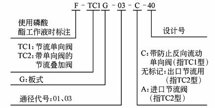 本元件装在电磁换向阀与电液换向阀之间,以控制电液换向阀的换向速度,减小冲击 型号意义: