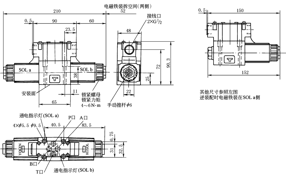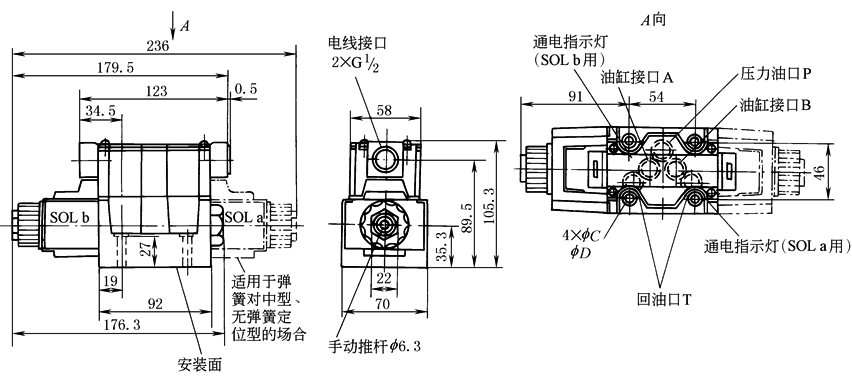 直流电磁铁:(S-)DSG-03-※※※-D※ 交直流转换型电磁铁:(S-)DSG-03-※※※-R※ 交直流快速转换型电磁铁:(S-)DSG-03-※※※-RQ※