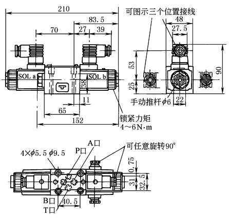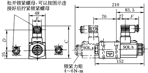 电磁铁通电前,一定要完全松开锁紧螺母。推动按钮后,顺时针旋转锁紧螺母,可使阀芯位置固定 |