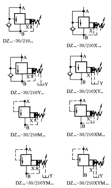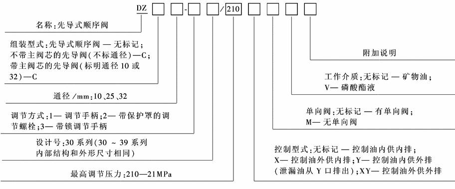 该阀利用油路本身压力来控制液压缸或马达的先后动作顺序,以实现油路系统的自动控制。改变控制油和泄漏油的连接方法,该阀还可作为卸荷阀和背压阀(平衡阀)使用 型号意义: