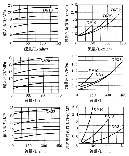 试验条件:υ=36×10-6m2/s,t=50℃;曲线适用于控制油无背压外部回油的工况,当控制油内排时,输入压力大于输出压力