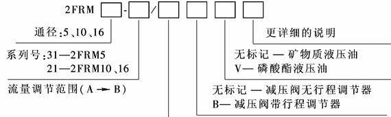 2FRM型调速阀是二通流量控制阀,由减压阀和节流阀串联组成。由于减压阀对节流阀进行了压力补偿,所以调速阀的流量不受负载变化的影响,保持稳定。同时节流窗口设计成薄刃状,流量受温度变化很小。调速阀与单向阀并联时,油流能反向回流。若要求通过调速阀两个方向(AB、BA)都有稳定的流量,可以选择Z4S型整流板装在调速阀下 调速阀型号意义: |